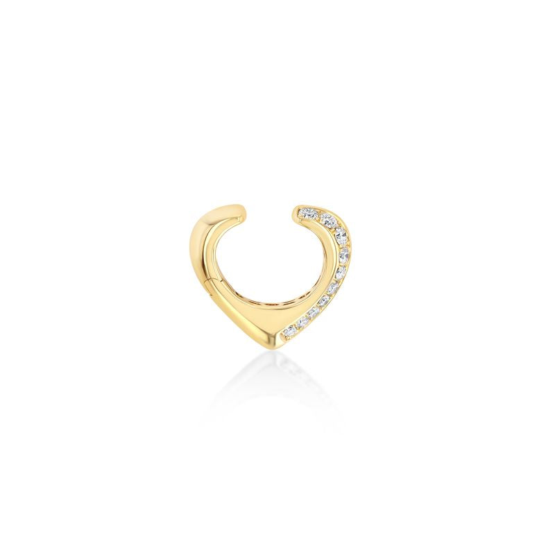 1-sided white diamond pave Knife Edge Heart Shape Ear Cuff. Sold as a Single. Diamond weight approx. .16 ctw