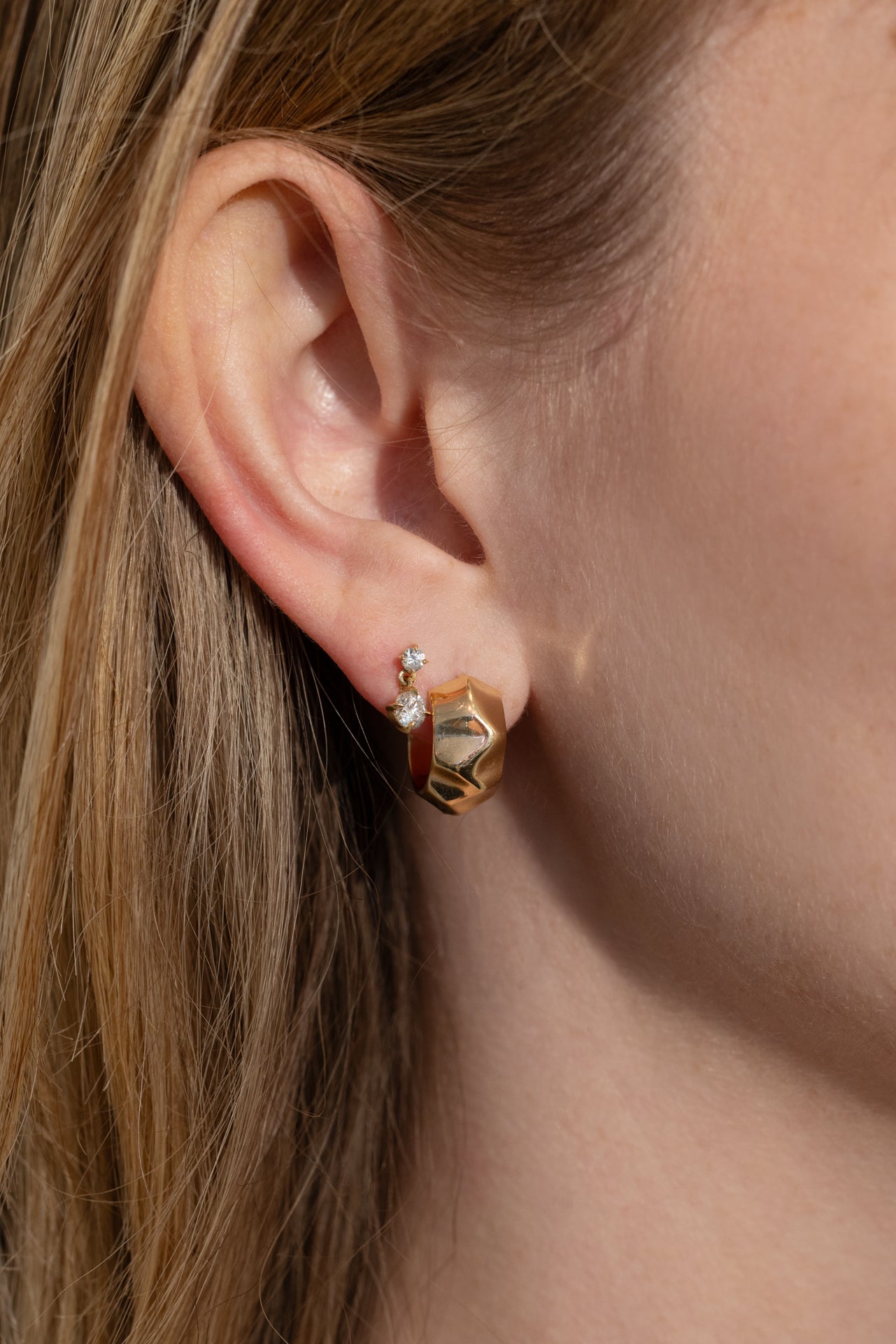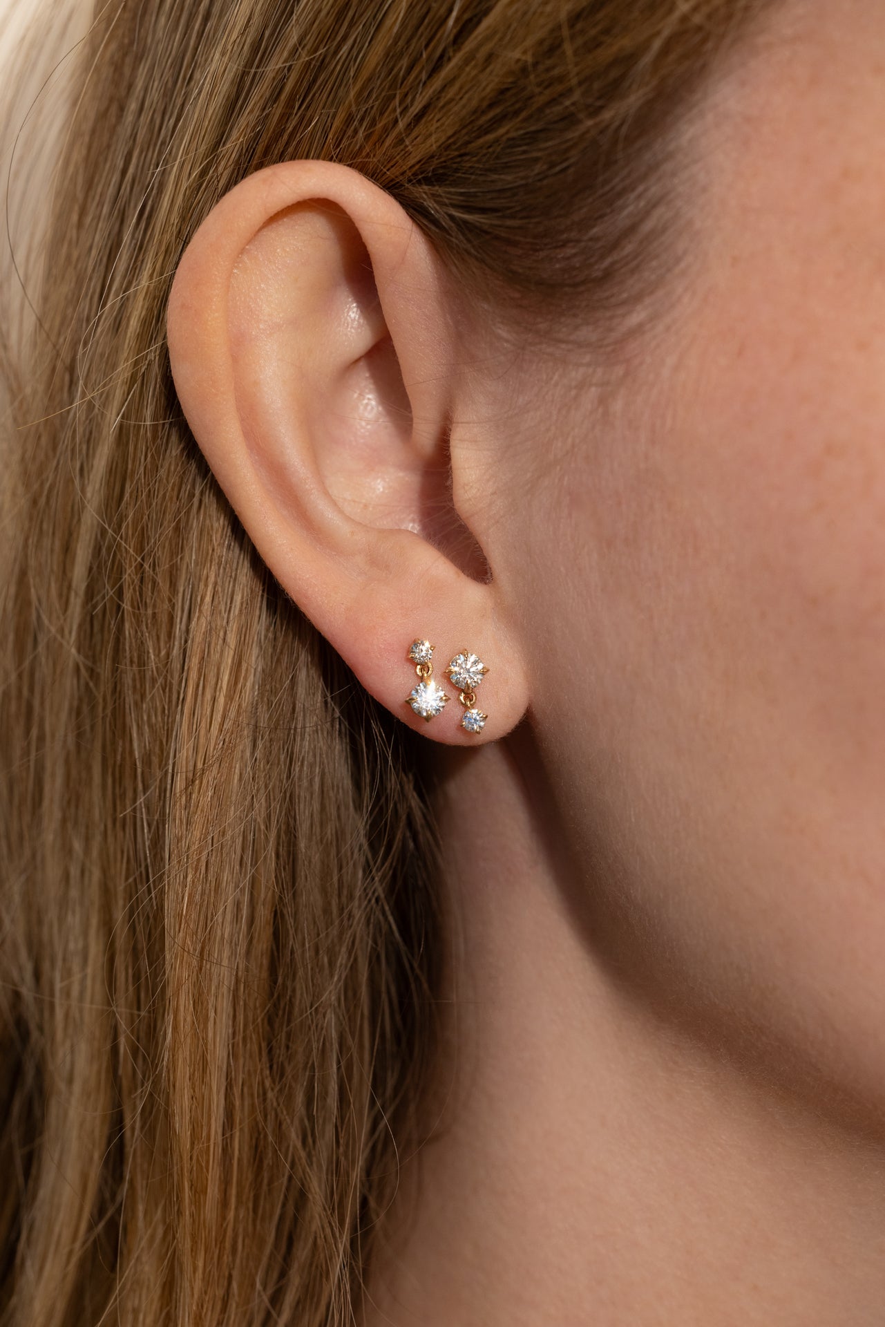 18k gold Éclat compass settings with alternating 2.5 and 4mm white diamonds. Post backs and butterfly closure. Sold as a pair, please inquire for singles of this style.