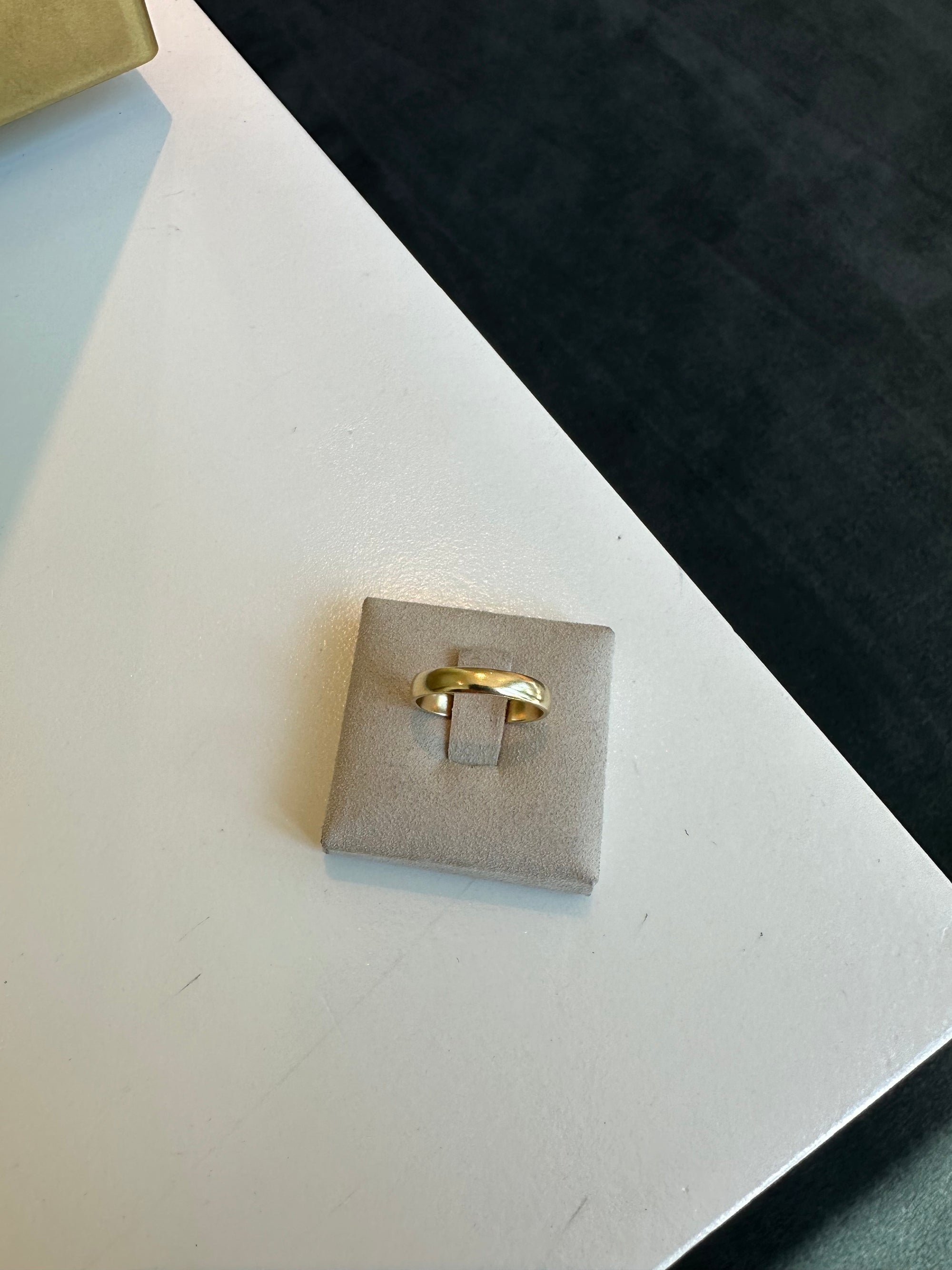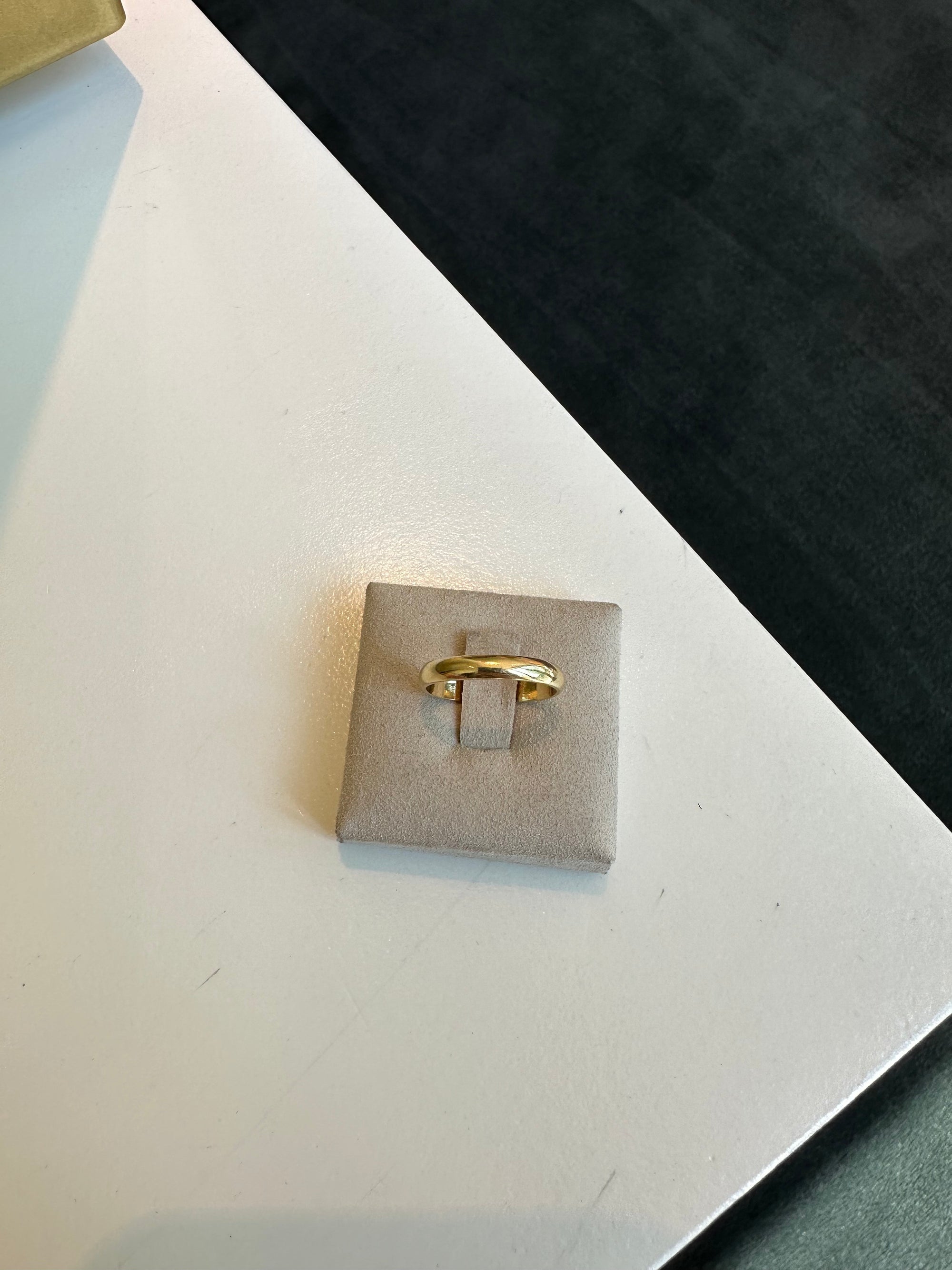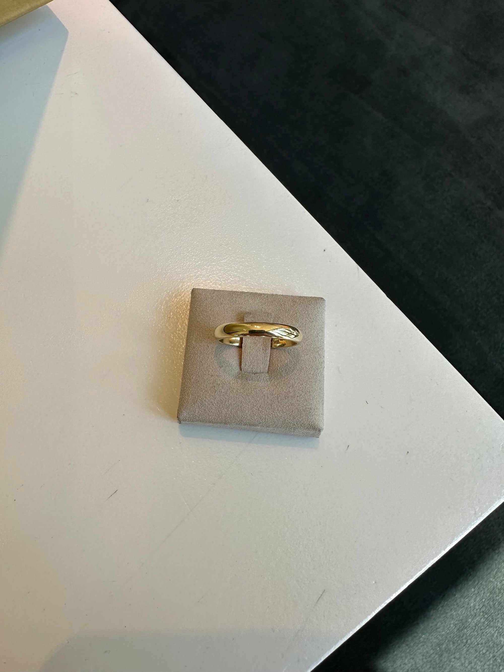 18k gold half round band.