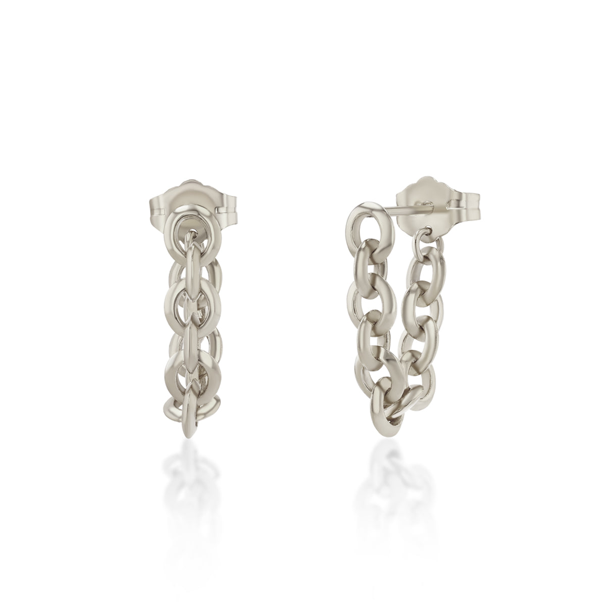 18k gold micro Link soft chain huggie. 14k post and backing. Sold as a single
